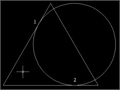指定對象與圓的第一個切點:——/*利用對象捕捉功能選擇三角形的1、2兩點*/