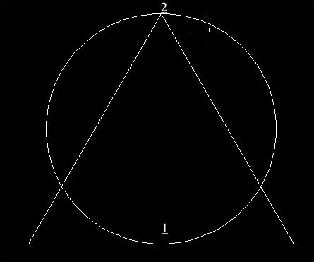 指定圓直徑的第一個端點:——/*利用對象捕捉功能選擇三角形的1、2兩點*/
