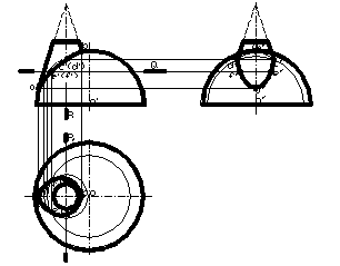 3 )分別依此光滑連接同面投影的各個點,即為所求相貫線。 三 、輔助球面法