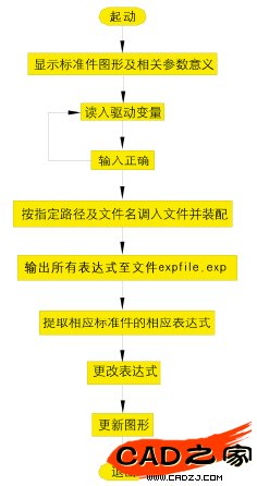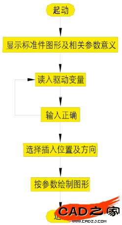 運(yùn)用開(kāi)發(fā)工具編制若干具有獨(dú)立功能的程序模塊,用戶(hù)可以進(jìn)行交互選擇,只需要輸入少量的信息和參數(shù),就能起動(dòng)相應(yīng)的程序模塊,使系統(tǒng)自動(dòng)完成數(shù)據(jù)訪(fǎng)問(wèn)、數(shù)據(jù)運(yùn)算、構(gòu)造和編輯實(shí)體等操作,從而生成所需規(guī)格的標(biāo)準(zhǔn)件圖形。
