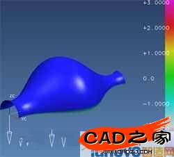 選擇被分析的表面,可以用繞部件拖拽一矩形方便地選擇所有面。如圖2所示選中的面被上色,在圖形窗口顯示一彩色條碼(顏色-斜率) 。