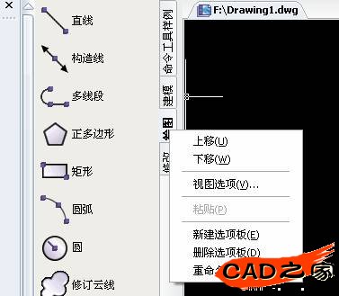 在工具選項板空白處,單擊右鍵調(diào)出快捷菜單: