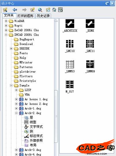再雙擊塊對象設(shè)計中心會顯示這張圖紙所有的塊對象。