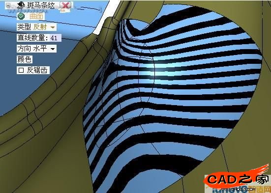 用斑馬條紋查看所補(bǔ)面的連續(xù)性,還是不錯(cuò)的。如圖九所示: