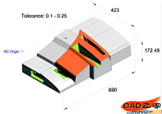 產(chǎn)品制造信息(PMI)在編程過程 中,用于定義加工原點(diǎn)、零件/毛坯尺 寸,而曲面的粗糙度則在設(shè)計(jì)過程中由 設(shè)計(jì)者自己定義,如圖1所示。