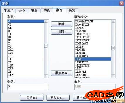 圖1:我就把直線命令的快捷鍵定義為G了