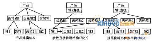 變型關系分析所做的工作之一就是根據產品的變型特點,分析所有零部件的變型參數和產品級變型參數之間的關聯關系。相互關聯的參數最終形成一條參數傳遞鏈,而所有參數傳遞鏈將組成一個復雜的參數傳遞結構。產品變型參數傳遞結構將直接影響復雜產品的變型能力及其變型設計效率,所以變型關系分析的另一項極其重要的工作就是優化變型產品的參數傳遞結構。