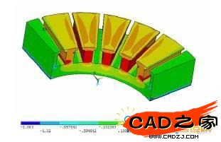 軸向磁場(chǎng)永磁電機(jī)的結(jié)構(gòu)和傳統(tǒng)電機(jī)有很大的區(qū)別,其顯著特點(diǎn)是定子和轉(zhuǎn)子是環(huán)型結(jié)構(gòu),電樞繞組的有效導(dǎo)體在空間呈徑向輻射分布,線負(fù)荷隨著半徑的增加而減小;磁路的飽和程度也不一樣, 在內(nèi)圓附近是齒飽和,而在外圓附近是軛飽和。軸向磁場(chǎng)永磁電機(jī)內(nèi)部介質(zhì)交界面曲直交錯(cuò),各部件材料的磁性能各異,這些特點(diǎn)都給電機(jī)的設(shè)計(jì)帶來(lái)困難,其磁場(chǎng)分布嚴(yán)格來(lái)講是三維的,需通過求解三維場(chǎng)的方法來(lái)精確計(jì)算磁場(chǎng)的分布。本文應(yīng)用大型有限元分析軟件ANSYS的電磁模塊對(duì)軸向磁場(chǎng)永磁發(fā)電機(jī)進(jìn)行三維靜磁場(chǎng)和空載工況分析,從而得到該電機(jī)的磁場(chǎng)分布和空載工況的性能計(jì)算結(jié)果,并對(duì)磁極形狀進(jìn)行優(yōu)化設(shè)計(jì),最終得到正弦度高的空載反電勢(shì)波形。