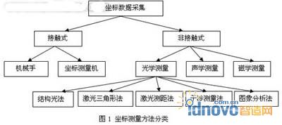 隨著科學技術的不斷發展,測量技術也隨著新的物理原理、新的技術成就的不斷引入而獲得長足發展,光波干涉技術特別是激光技術的實用化使得測量精度提高了1-2個數量級;數字顯示技術在測量上得到了充分的應用,提高了讀數精度和可靠性;光電攝像技術與計算技術的結合,使得對復雜零件的測量無論是精度還是效率都得到了極大的提高。目前,主要的坐標測量方法分類如圖1所示。