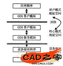 Windows將應用程序從具體輸出設備中分離出來。在MS-DOS中,應用程序負責為所有輸出設備編程。Windows應用程序不負責對輸出設備編程。圖形用戶接口GDI為應用程序提供了一套獨立于設備的標準繪圖指令集。對于添加的新硬件,由硬件制造商提供驅動程序,而應用程序則通過GDI創建并維護設備環境(DC)。Win32應用程序在Windows95環境下都被分隔成了用戶模式與核心模式。在用戶模式下禁止直接取用圖形設備資源,而是交給操作系統核心模式來完成。這種模式稱為GDI的客戶/服務器模式如圖2。GDI的客戶/服務器模式有效地將應用程序彼此分離,從而提高了Windows 環境的安全特性。而且任何訪問輸出設備的函數都留在GDI的服務器方,從而保證了入侵應用程序不能直接訪問到其它應用程序的屏幕數據。