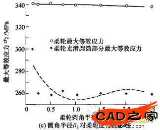 圖9圓角半徑對柔輪應力影響曲線