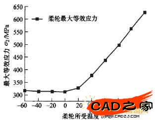 圖11 柔輪最大應力隨溫度的變化曲線