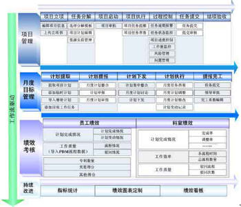 基于企業工作流程標準化與工作計劃靈活性的需求,將項目計劃抽取到月度計劃中,并與日常工作、臨時和增補計劃合并,形成部門級月度目標,為客戶提供符合中國企業當前管理水平的工作模式。月度目標從下到上逐級審核,體現結果導向,從計劃提交、審批到發布,從完工提報到績效評價,全過程幫助技術中心提升工作團隊的執行能力和管理層的控制能力,實現真正意義上的扁平化管理。