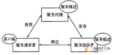 服務提供者將服務部署在Web上,通過使用WebServices描述語言(WSDL)來描述給定Web Services提供的功能;服務提供者將所部署的服務發布在web上,由服務代理幫助服務提供者和服務請求者找到彼此;服務請求者使用API向服務代理尋求他所需要的服務。當服務代理返回結果時(將它們作為搜索結果),服務請求者將這些結果與特定服務綁定。