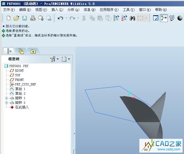 4 ,同第3步,用另一條線做旋轉曲面,結果如下