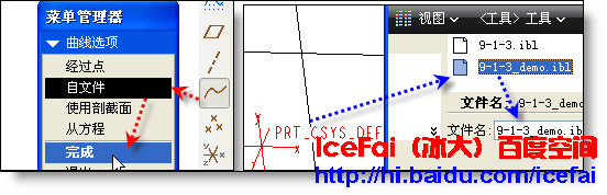 從上面的ibl文件中可以看到,ibl文件中有一個(gè)封閉截面,而這個(gè)截面由四段曲線組成,通過WildFire4.0的“自文件”曲線方法并輸入