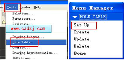 選擇菜單欄下的Tool…>Hole Table。可在彈出對話框中設(shè)置孔表的格式,如圖2。孔表格式中包括表格的大小,表格內(nèi)容的排列方式等等。