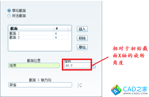 可以輸入第二個截面相對于初始截面X軸的選擇角度。