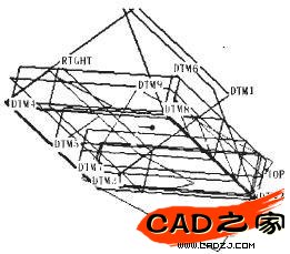 對(duì)于一個(gè)產(chǎn)品來(lái)說(shuō),骨架就是產(chǎn)品裝配的構(gòu)架,產(chǎn)品的裝配應(yīng)該按照骨架模型裝配。有了骨架,產(chǎn)品的結(jié)構(gòu)、大小和尺寸就由骨架確定了,此時(shí)在骨架上裝上各個(gè)零部件,裝配也就完成了。可以把骨架文件理解為3D化的布局Layout文件,它同樣是一個(gè)設(shè)計(jì)思路和參考標(biāo)準(zhǔn),骨架是一些立體化的、有位置、有尺寸的點(diǎn)、線、面,這些點(diǎn)、線、面就像布局中的平面軸線一樣為裝配提供依據(jù)和基準(zhǔn)。在產(chǎn)品的自頂向下設(shè)計(jì)中,主設(shè)計(jì)首先完成布局的設(shè)計(jì),通過點(diǎn)線面包含了產(chǎn)品的主要形狀、位置等信息,然后把整個(gè)項(xiàng)目分給多個(gè)子項(xiàng)目,隨同骨架模型一同分給不同的小組和個(gè)人,子項(xiàng)目再以骨架為參考,骨架改變后,子項(xiàng)目自動(dòng)改變。如圖2所示,為后支撐的骨架模型。