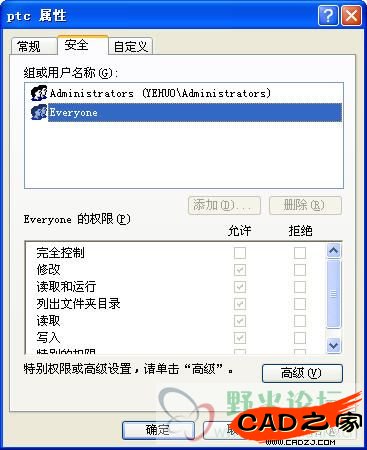 2、更改此提示“沒有寫入權限”的文件夾的權限,方法為找到此文件加,然后右擊此文件夾,點“屬性”,“安全”,然后點列表中的每一個用戶,在允許下面選“完全控制”。這樣你就對此文件夾有寫入權限了,proe 也不會再提示你沒有寫入權限了。