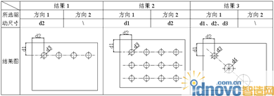 從表1可見,陣列特征不但可以控制復(fù)制特征的位置,還可以控制其形狀大小的變化。如結(jié)果3,只需將d3驅(qū)動尺寸的增量設(shè)為“d4-d3”,就能得到該結(jié)果。表1所列舉的僅是一些基本的變化,只要掌握驅(qū)動尺寸選取方式的方法,該類其他的陣列變化就不難把握了。
