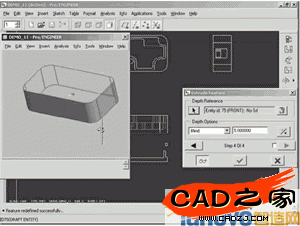 用戶可以輸入一個深度值,或者通過在 DXF 繪圖上選取相應的邊來定義深度,然后從側視圖創建切口特征。參照DXF文件選取第二個切口,然后選取孔特征,用戶就擁有了一個新的3D模型。