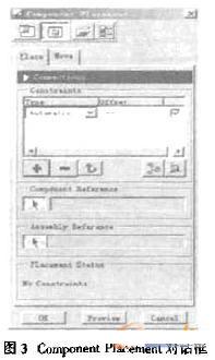 (4)接合面吻合定位。在如圖3所示的Component Placement對話框中的Conetraint Type欄下選取Mate項。分別選取軸承蓋和軸承座的接合平面,如圖4所示。