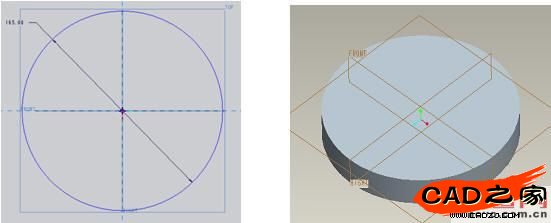使用拉伸命令作一圓柱形基礎(chǔ)特征,草圖和拉伸后的特征如圖2所示。