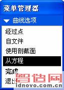在“基準(zhǔn)” 工具欄中單擊“插入基準(zhǔn)曲線”按鈕,在彈出的菜單管理器中選則“從方程”選項(xiàng),單擊“完成”,如圖3中所示。彈出“曲線”對話框和次級菜單。根據(jù)系統(tǒng)提示選擇系統(tǒng)默認(rèn)坐標(biāo)系PRT_CSYS_DEF。在下一級菜單中選擇“笛卡爾”坐標(biāo)系(如圖5、6所示),隨后彈出記事本中定義曲線方程,該方程就是從動件的位移曲線方程,根據(jù)設(shè)計(jì)的不同,可編寫不同的曲線方程。