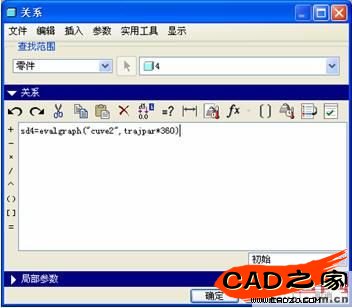 選擇菜單“工具/關(guān)系”選項(xiàng),將需要驅(qū)動的尺寸附加到上步所建圖形上,實(shí)現(xiàn)在掃描過程中尺寸的實(shí)時驅(qū)動。具體方法就是在彈出的“關(guān)系”對話框中輸入圖12中所示的關(guān)系式,單擊確定按鈕退出草繪模式。
