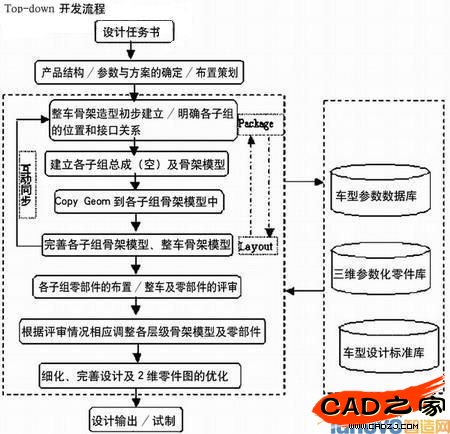 在設計之前仍需對整個過程進行約定,包括對象(Object)的文件命名約定、產品庫與標準庫中典型的對象類型、庫文件夾結構、角色(Roles)和授權(艾俊 路桂婷(北汽福田汽車股份有限公司)izations)等的約定,以及諸如采用標準化的格式、記錄本人的工作任務、接受信息來源、輸出信息方向、變更的影響范圍等等,以使項目的組織管理及設計過程的了解有據可考。 設計流程、任務范圍界定、任務描述由各系統的設計人員在未開始設計之前,先靜下心來,描述自己在該項目中的角色,設計內容,與周圍的信息交流內容和形式,并將其記錄在文檔中,存檔于數據庫,同時與所設計的子系統相關聯,有利于理順設計思路,流暢設計過程,便于后續自頂向下設計方法的開展。同時為后續新項目的快速啟動奠定基礎。