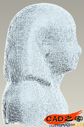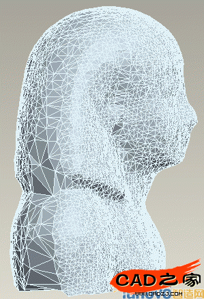 下圖顯示使用“精整”(Refine) 命令,在所選區域中將每個三角形都使用四個三角形替換后的多面曲面。