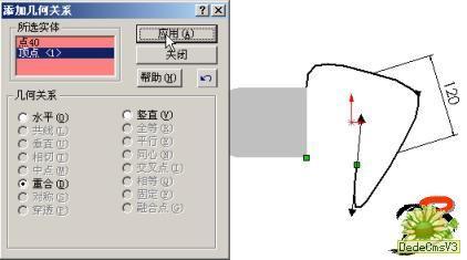 通過添加幾何關(guān)系,可以使樣條曲線型值點(diǎn)與其它實(shí)體之間保持重合、水平、相切等關(guān)系,從而實(shí)現(xiàn)對曲線形狀的控制。