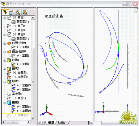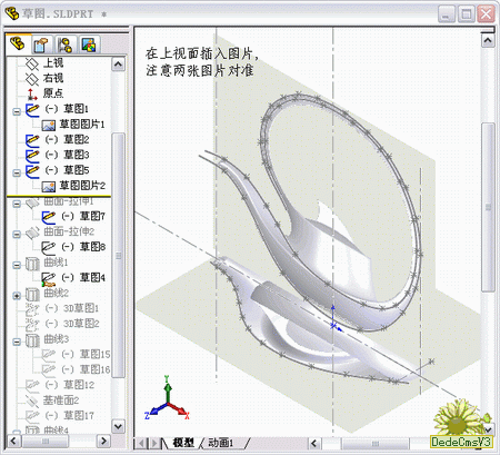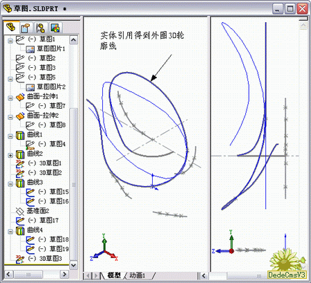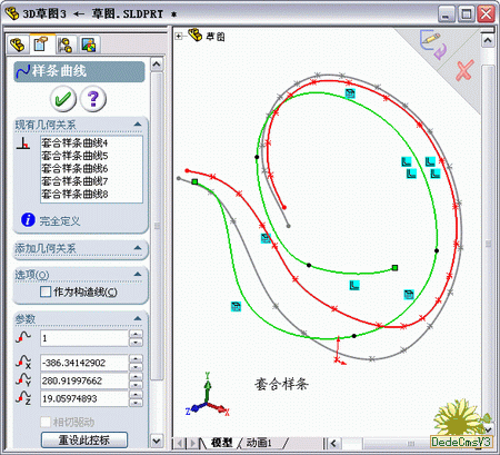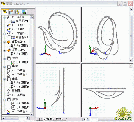3D樣條的建立是參照wjsy板大的思路來的,雖然是不同的軟件,但是只要思路相同,在SW中一樣可以很方便的實現.