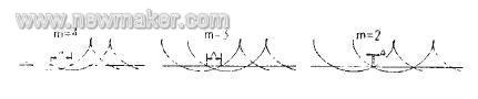 滾筒結構參數和機具工作速度一定時,撿膜齒組周向個數決定周向相鄰撿膜齒的運動軌跡重合量。圖中顯示了撿膜齒周向個數m分別為4、3和2時相鄰齒運動軌跡重合的仿真結果。圖中直線表示地表,撿膜齒的運動軌跡的最低點到地表線的垂直距離為撿膜齒入土深度。當入土深度相同時,相鄰齒運動軌跡重合量隨撿膜齒數量的增加而增大。撿膜齒在周向的個數多,重合量大,引起漏撿的可能性小,撿膜率高。圖3。