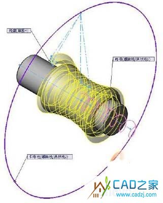 6. 點擊掃描切除命令,選擇“草圖3”為輪廓,螺旋線為路徑,添加渦狀線為引導線,點擊確定。