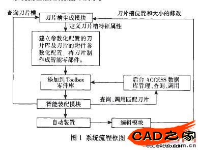 根據以上的關系可以添加相應的方程式確定刀片槽中心的位置,添加一個草圖標出刀片槽的中心插入點。運行刀片槽生成模塊,界面如圖3所示。選取需要的刀片牌號后,單擊確定,系統會提示選擇刀片槽中心,即可選擇上述草圖中的插入點。程序將執行API函數建立刀片槽的各個特征,并添加刀片槽的特征屬性。
