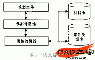 基于此,可將零件的工藝路線(xiàn)、工序、工時(shí)和材料定額等工藝信息以屬性的形式存儲(chǔ)于模型文件中,從而從邏輯和存儲(chǔ)兩個(gè)角度均可實(shí)現(xiàn)設(shè)計(jì)和工藝信息的集成。這些屬性的編輯通過(guò)專(zhuān)門(mén)開(kāi)發(fā)的屬性編輯器進(jìn)行。