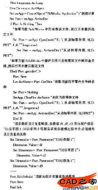 以SolidWorks為平臺,闡述了SolidWorks參數化設計的相關技術,并且以VB作為編程語言,詳細說明了尺寸驅動法和程序驅動法兩種參數化設計的程序編制方法