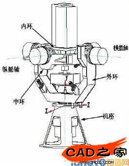 該三軸模擬搖擺復現機械裝置主要由內環、中環、外環和機座組成,如圖1所示。