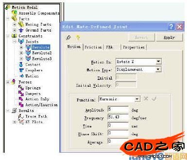 此外,還可將運動仿真的效果直接輸出為影視文件。在Motion的下拉菜單中選取“Export Results”按鈕后,點擊“To AVI Movie”按鈕,即可將運動仿真的影視文件存儲在指定的目錄。