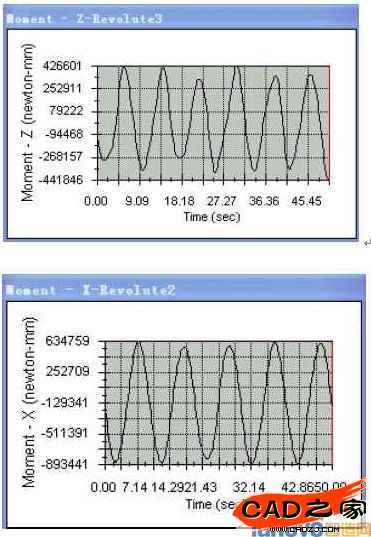 待運行結束后,用鼠標選取“Revolute”按鈕,點擊右鍵,選擇“Plot”就會出現如圖5所示的窗口,點擊其中的“Rotary Motion Generator”按鈕,選取所對應的各轉動軸的驅動力矩。以圖1中的坐標系為參照,Y軸為艏搖軸,X軸為橫搖軸,Z軸為縱搖軸。從而得到外環(Y軸)、中環(X軸)以及內環(Z軸)的驅動力矩圖。如圖6所示。