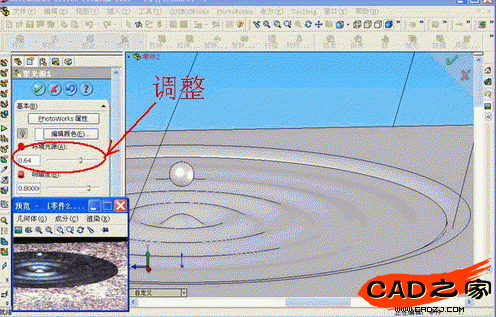 我們回到建模的特征書,打開光源,發(fā)現(xiàn)被Studio添加了幾個光源,右鍵編輯光源,調(diào)節(jié)一下光源的亮度等選項,在材質(zhì)里面對水的材質(zhì)再進行調(diào)整,比如增加透明度等等,這個過程中可以通過預(yù)覽窗口來看改編的效果。