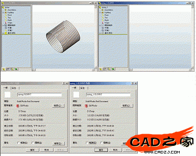 這種方式的特點就是在保存文件前,先將零件中的所有特征都先抑制起來,即使是組合件也可以將所有的零組件都進行抑制或者隱藏,如此可以將文件急速縮小,觀看文件時再將所有抑制的特征打開出來。如下圖中的彈簧文件,沒有抑制特征與抑制特制的文件大小相差近30倍。這樣的做法配合SolidWorks的模型配置來設置保存時的模型配置,所有的特征抑制起來當成一個配置,如此在對方恢復抑制時不會發生恢復抑制的錯誤產生。