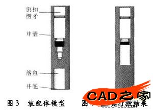 要對ZDM型鉆具倒扣撈矛進行仿真,首先要建立它的裝配模型。用SolidWorks軟件建立三維裝配體模型的方法有2種:①先建立零件,然后使用配合技術對各構成零件進行組裝,建立裝配體,即自底向上的裝配體建模技術;②直接在裝配體模型中根據零件特征和尺寸關聯建立起各個構成零件,即自頂向下的建模技術。這里采用前一種方法,即利用SolidWorks提供的智能配合技術先建立ZDM型鉆具倒扣撈矛裝配休模型,然后再完成整個模型的裝配。