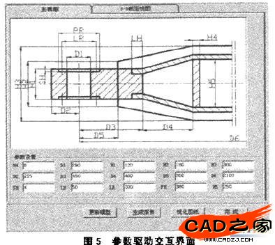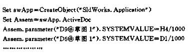 參數確定以后,利用Visual Basic開發工具與SolidWorks API 函數實現尺寸驅動,編輯人機交互操作設計界面(見圖5),并進行結構檢驗和零部件之間干涉檢驗。應用程序可嵌人到SolidWorks系統中,加載后,應用程序菜單直接出現在SolidWorks主菜單上,如同該軟件的其它功能模塊一樣。部分程序代碼如下: