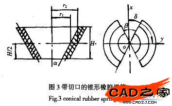 帶切口的錐形橡膠彈簧如下圖3所示。