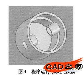運行程序,輸人相應的參數,點擊"尺寸計算",程序根據參數的約束關系表達式計算出其它的尺寸參數,然后點擊"創建"建立與用戶輸入參數相對應的零件模型。創建的零件模型如圖4。
