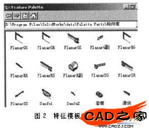 為了實現構件的快速建模和避免重復性工作,建立了一些常用構件的三維參數化模板庫.用戶可以在特征模板中查詢和調用各種構件模型(如圖2).構件建模時應充分利用SolidWorks提供的16種幾何約束關系,以得到各種特征之間的幾何約束關系.