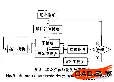 堆垛機的參數化設計總體分為三個階段.第一階段包括:模塊中零部件的建模,標準件、通用件的建模及數據庫的建立、裝配、參數化、接口數據的定義說明,零部件的2D工程圖;第二階段包括:接口模塊的實現,將計算模塊的輸出數據轉化為生成模型所需的輸入參數;第三階段為采用有限元分析軟件COSMOS對生成模型進行結構和力學性能的校核分析。